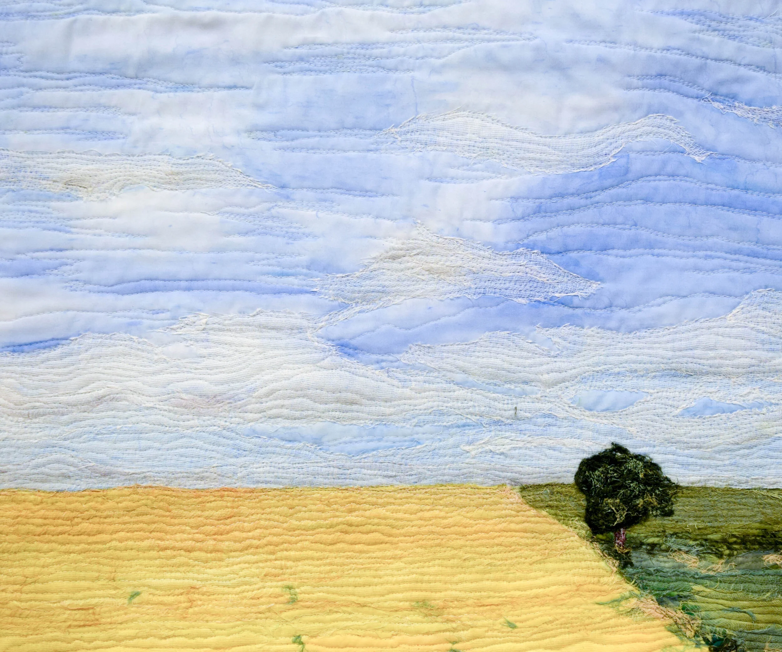 I have grown out of a background of home sewing and quilting, evolving into the art I make today. I hope the journey will continue as I hone my skills and develop my artist’s eye.