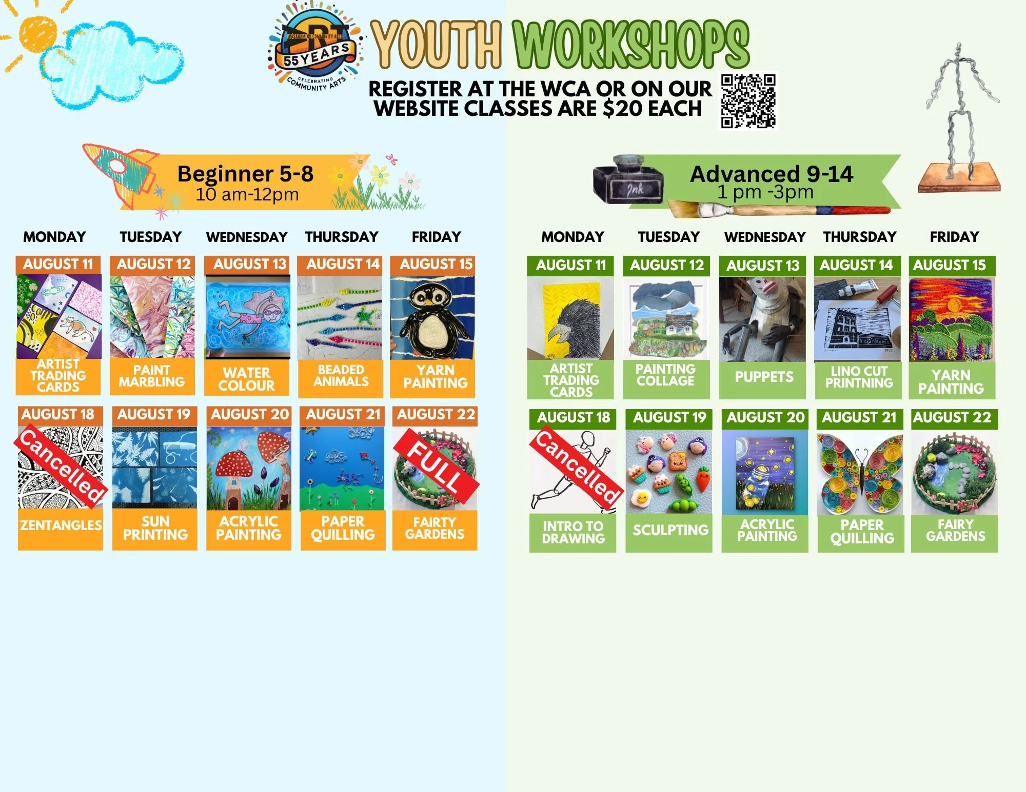 Advanced Classes for Ages 9–14 are held 1:00–3:00 pm.